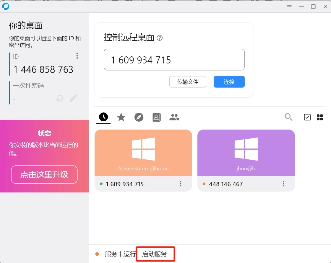 私人服务器远程控制Rustdesk使用 2024-10-17 15:03 | 626 | 0 | 办公网络 46 字 | 几秒读完 1.下载客户端 Windows下载:rustdesk-windows-x86_64 2.解压运行 3.运行成功后 – 如果不是准备就绪,就点一下【启动服务】 Rustdesk远程桌面